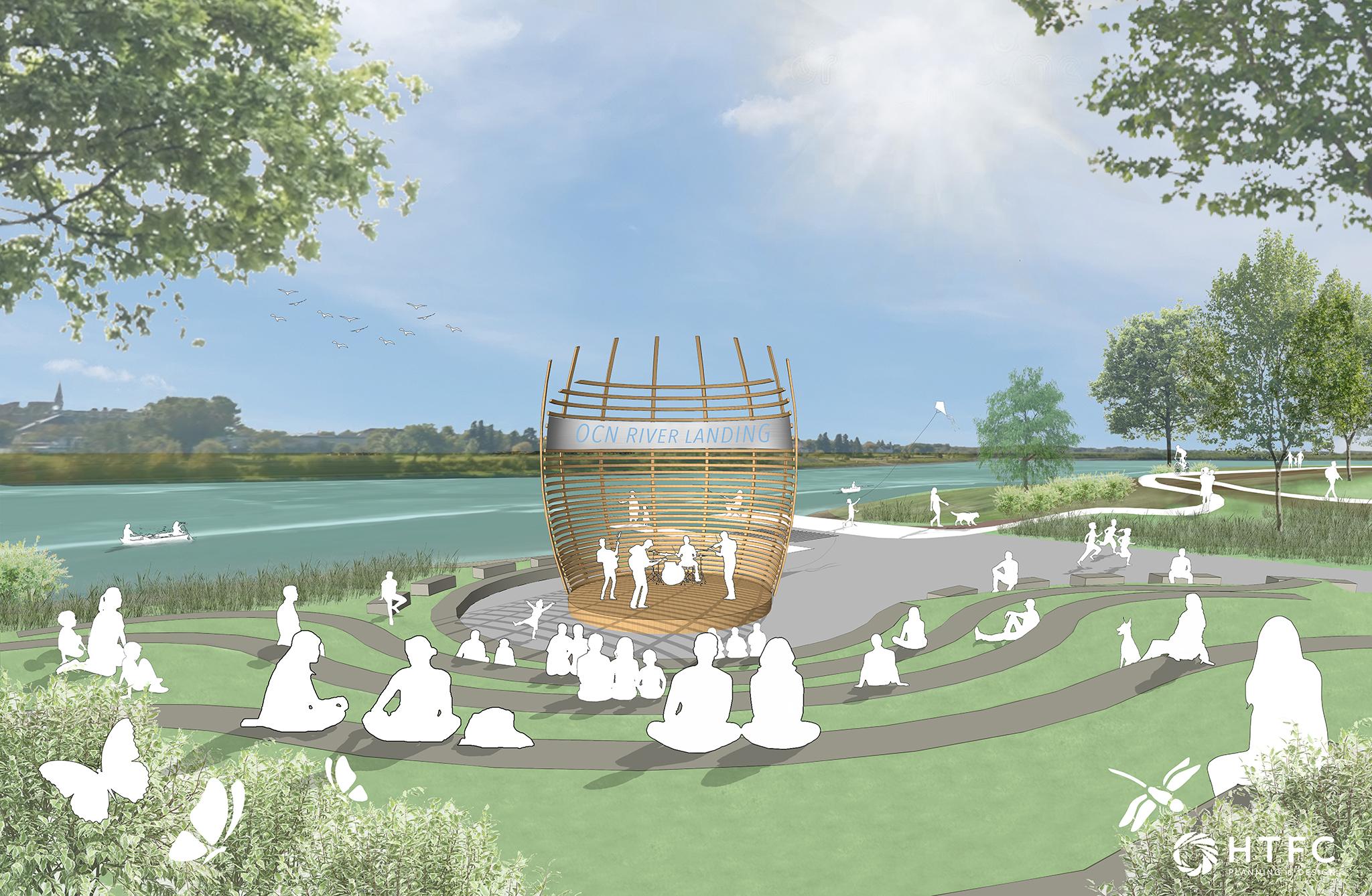 This River Landing will include a new splash park, play area, amphitheatre and festival space facing the river.