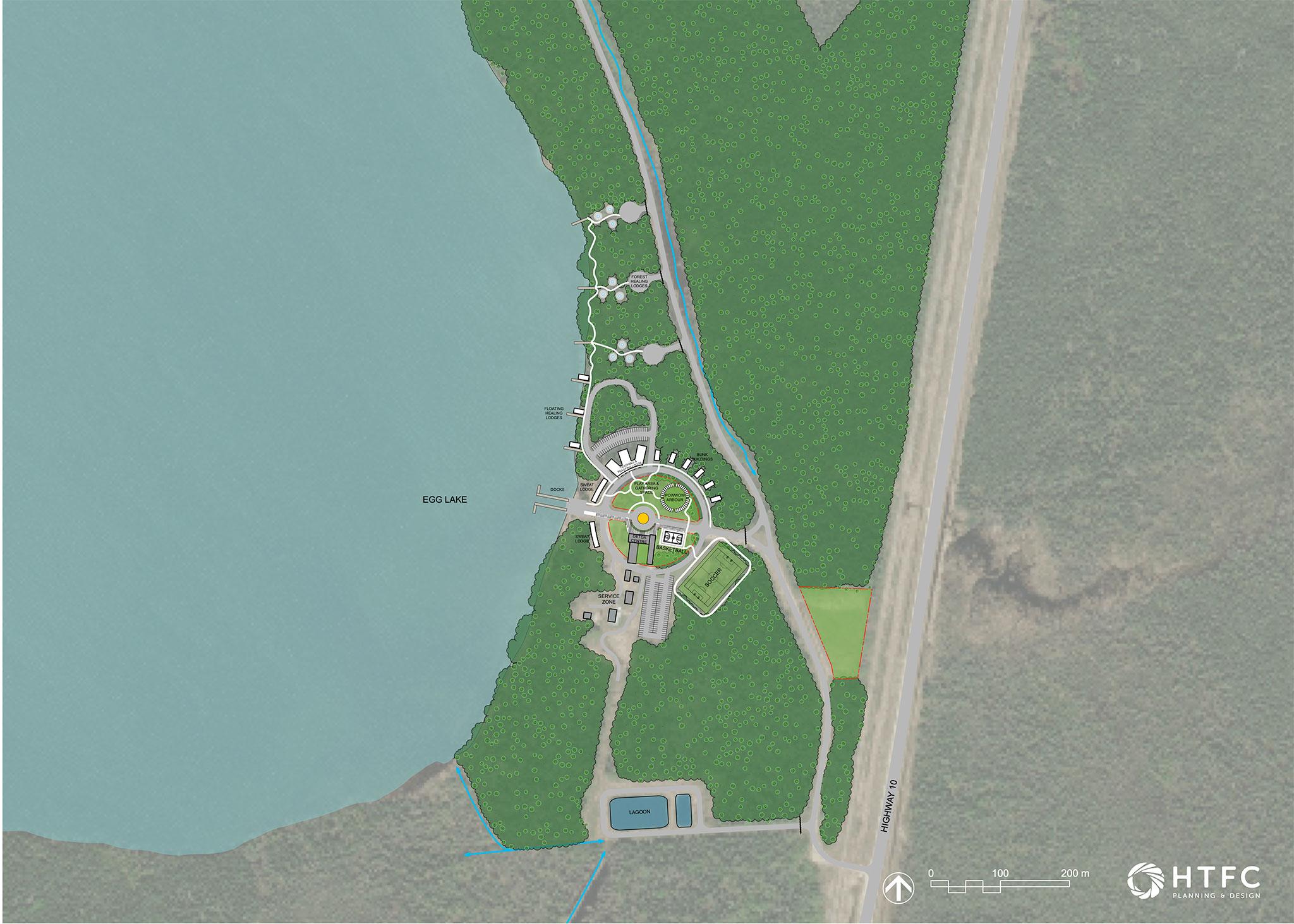 Egg Lake is located 65 kilometres north of Opaskwayak 21E along Highway 10. The Master Plan re-imagines the old prison facility here transformed into a new community healing centre, symbolic, as it demonstrates the possibilities of rehabilitation. The location is remote and provides the opportunity for immersion in nature and connection to the land, an ideal healing environment.